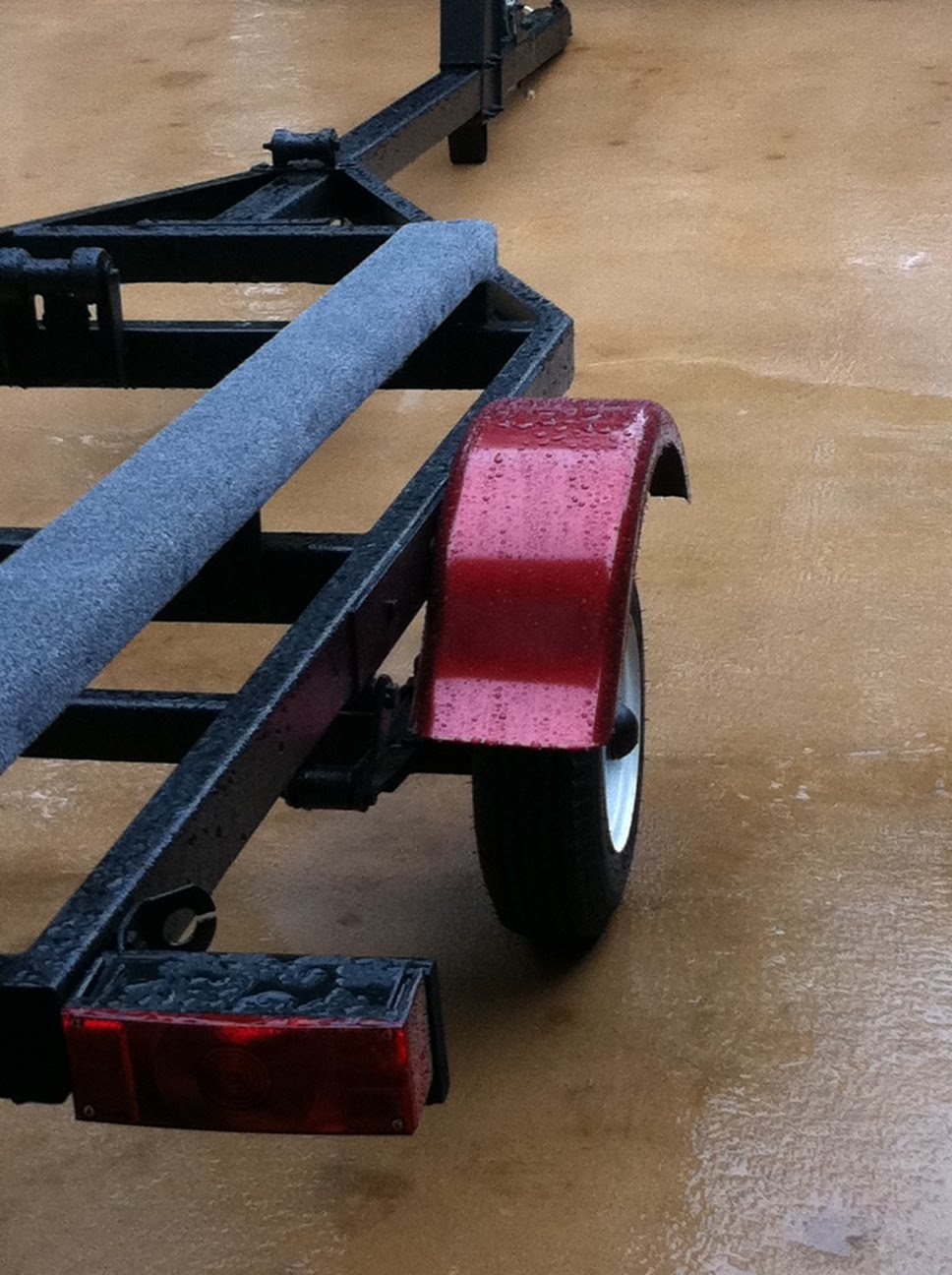 Good picture of the Wesbar lights on the trailer and the new paint (yes-repainted again!) on the fenders, Toreador Red Metalic, much better match to the seats than the candy apple red.